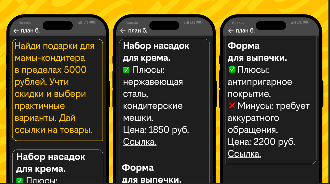 Подготовка к 8 Марта часто проходит в поиске идей подарка. Когда времени осталось мало, а удивить близких хочется, на помощь приходят нейросети. Доступ к ним сегодня можно получить прямо в мессенджерах – например, на тарифе «план б.»* от Билайна. Рассказываем, как с их помощью решить три главные предпраздничные задачи: выбрать подарок с учетом бюджета, создать персонализированное поздравление и придумать уникальный дизайн.