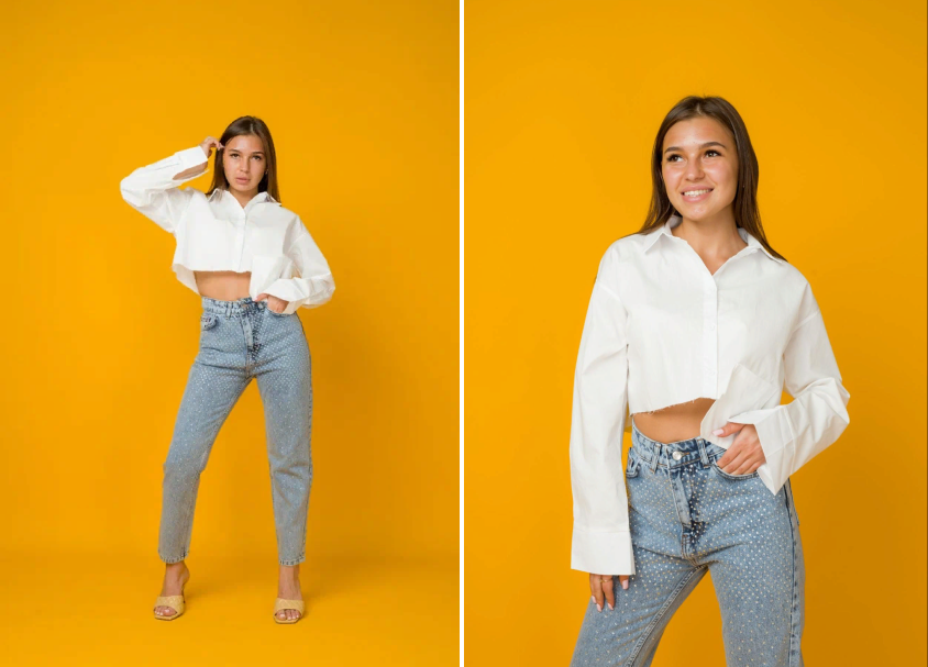Трендовые укороченные рубашки с удлиненным карманом – хит этого сезона. Базовые оттенки позволят сочетать верх с чем угодно: как с принтованными джинсами, так и с юбкой или классическими брюками. При составлении летнего образа немаловажно выбрать и уместную обувь. Для того чтобы разобраться, какую пару приобрести в свой гардероб к джинсам и как их носить, нужно ориентироваться на фасон брюк. В этом случае рекомендуем дополнить образ бежевыми туфлями на невысоком каблуке.