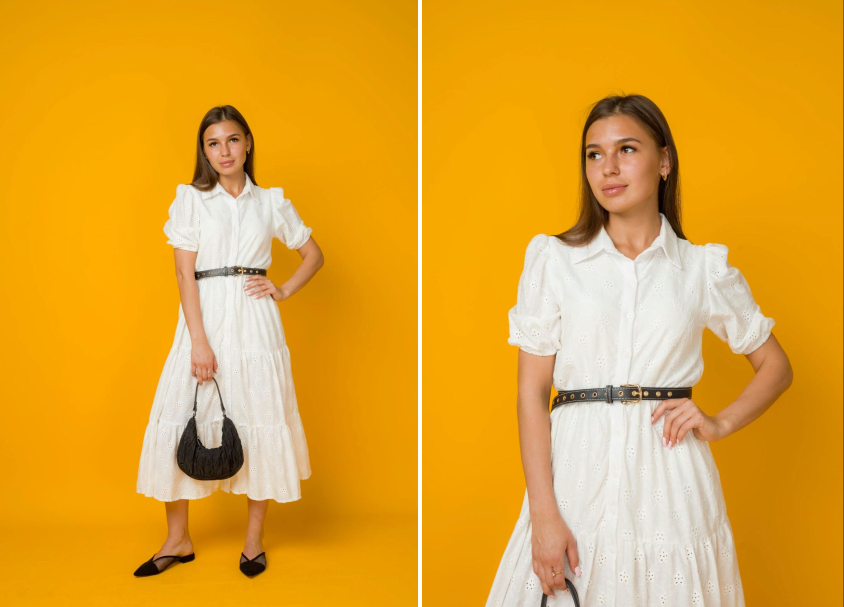 Какой летний гардероб без легкого сарафана в светлых тонах? В таком воздушном и женственном образе точно следует отправиться на фотосессию с цветами или просто на прогулку. Подчеркнуть талию и дополнить образ можно ремнем контрастного цвета.