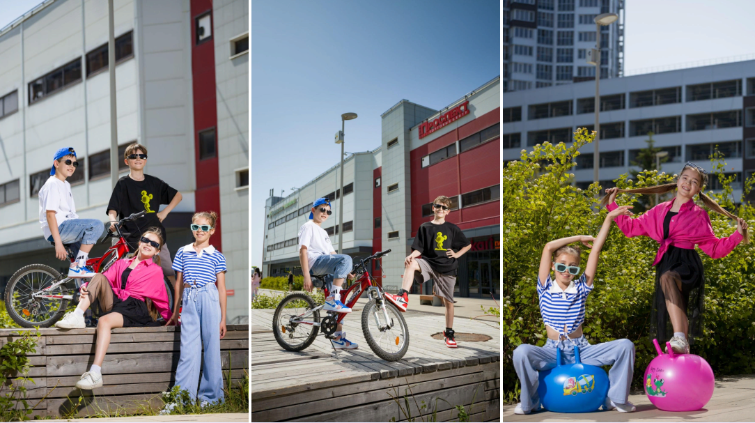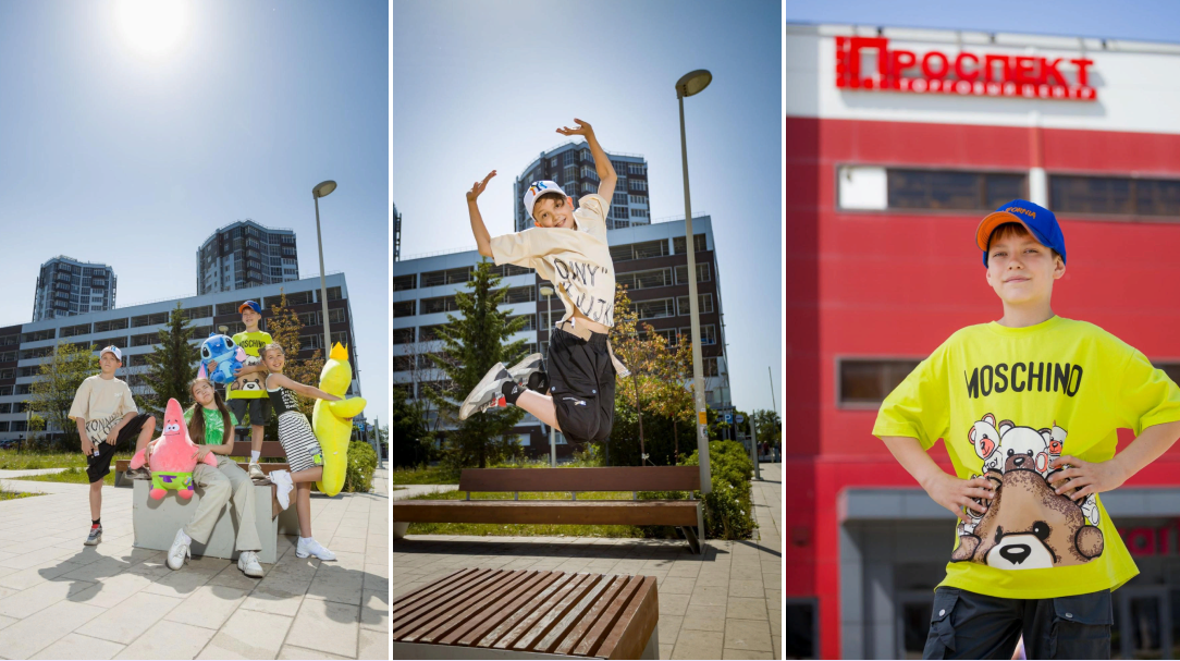 Трендовые принтованные футболки, модные шорты и джинсы в сочетании с яркой обувью понравятся как самим детям, так и их родителям. Стилист гармонично подобрала капсульные образы для детей в ТЦ «Проспект».