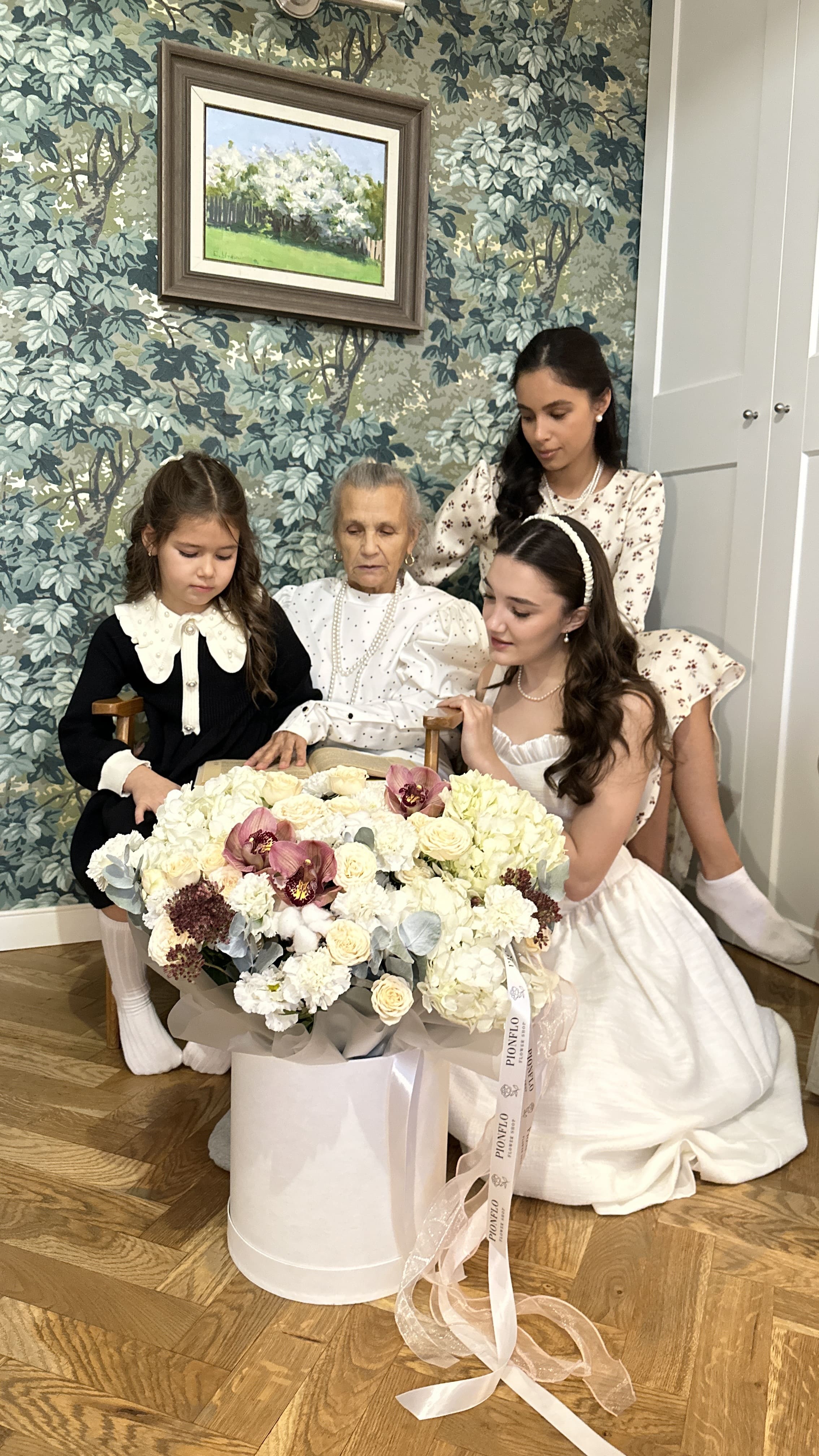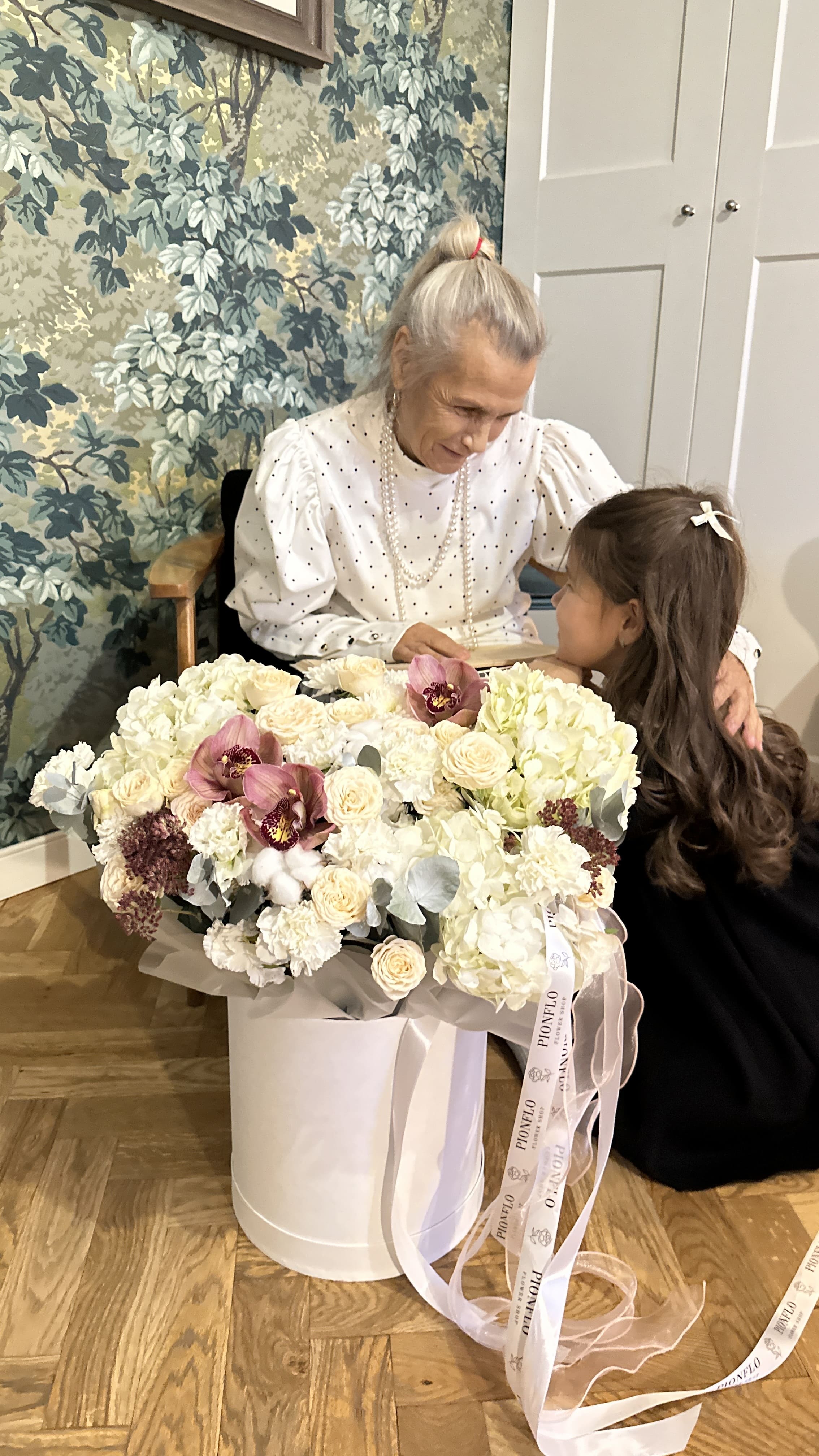 Идеальные цветы: Белые или кремовые розы (символ уважения и чистоты), лилии (символ достоинства и красоты), хризантемы (символ долголетия и стабильности).