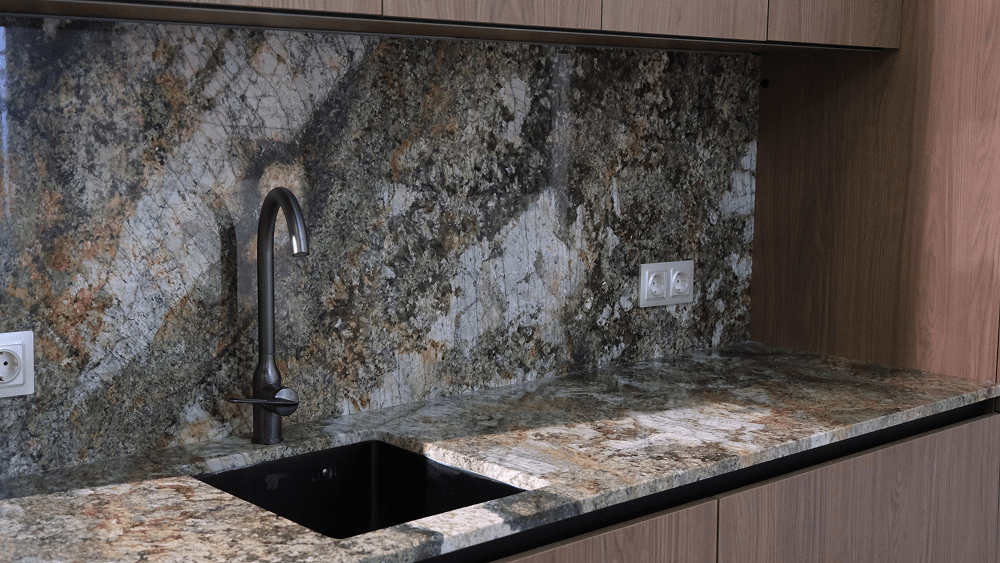Техническая база тоже внушительная. На площадке установлен пятиосевой станок, способный резать камень под любым углом и толщиной до сорока сантиметров, а также фрезерные и гравировальные машины, придающие материалу нужную форму и рисунок. С их помощью создаются подоконники, столешницы, террасная мебель, лестницы, островки и полки — всё с точностью до миллиметра.
