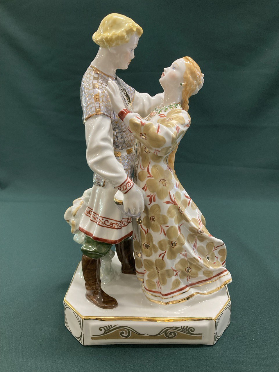 Крупная фарфоровая композиция по мотивам поэмы А. С. Пушкина, выполненная на Дулёвском фарфоровом заводе. Высота — 36 см. Скульптура отличается динамичной пластикой и выразительными деталями, характерными для советского декоративного фарфора середины XX века. Такой предмет станет акцентом в кабинете или гостиной и создаст в интерьере особое настроение.