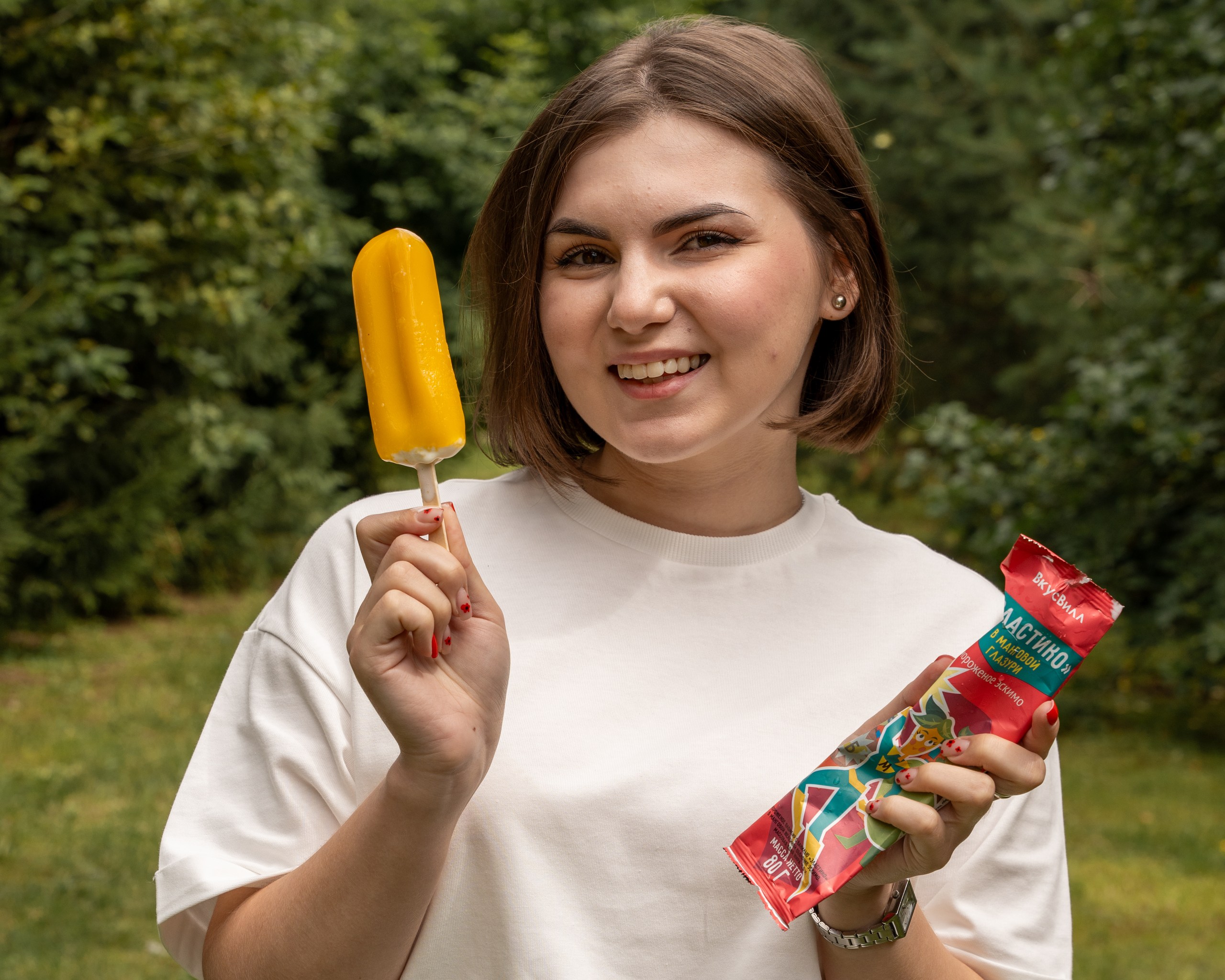 «Этот веганский десерт стал для меня настоящим открытием. Нежность пломбира и легкость сорбета создают уникальный дуэт. Вкус напоминает 'Пина Коладу' — освежающий и сладковато-фруктовый. Идеально для долгих летних прогулок, он заряжает солнечным настроением и мгновенно переносит в тропики».