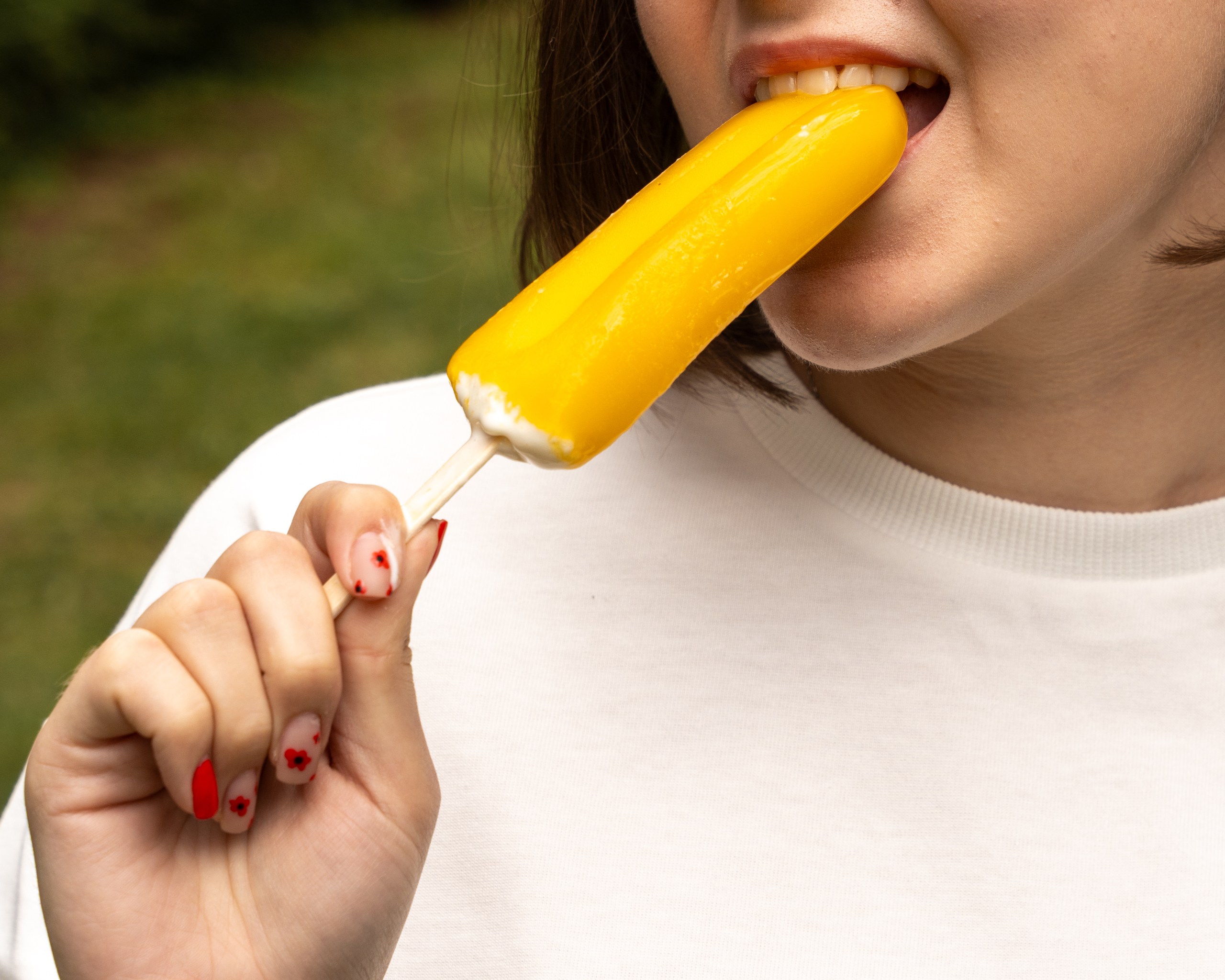 «Натуральное мороженое с желейной глазурью из манго — это что-то невероятное. Сливочный вкус с освежающей кислинкой манго делает его идеальным десертом для жаркого летнего дня. Настоящее наслаждение без искусственных ароматизаторов и красителей».