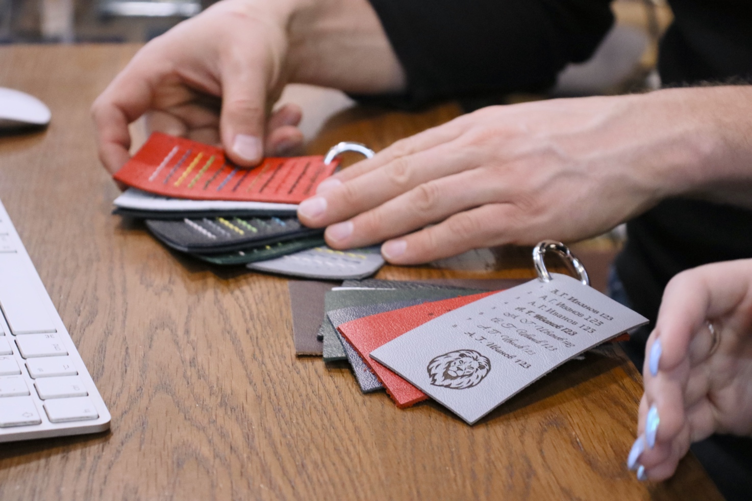 – Мы вышли на open space market, выпустили визитки и после этого заказы пошли очень хорошо. Люди со временем уже знали куда обращаться за необходимыми аксессуарами для себя или в подарок близким, поэтому мы решили предлагать дополнительную услугу – гравировку. Это делает подарок персонализированным и более ценным. С помощью лазера мы создаем на изделиях имена, эмблемы, рисунки. Размер заказчик выбирает сам, либо с помощью нашего дизайнера. У нас есть определённые ограничения по гравировке, но они все обсуждаются с покупателем на начальных этапах. Многие берут изделия на подарок, поэтому наши клиенты любят эту услугу. Да и просто для себя – персонализированная вещь является премиальной. К тому же, мы даём годовую гарантию, однако наши изделия, конечно, носятся годами. Недавно приходила клиентка, которая 7 лет назад купила автодокументницу. Принесла, чтобы мы изменили гравировку фамилии. Изделие выглядело как новое – многое зависит от того, как используется вещь. Кожа красиво стареет, поэтому наши изделия созданы для долгосрочной носки.