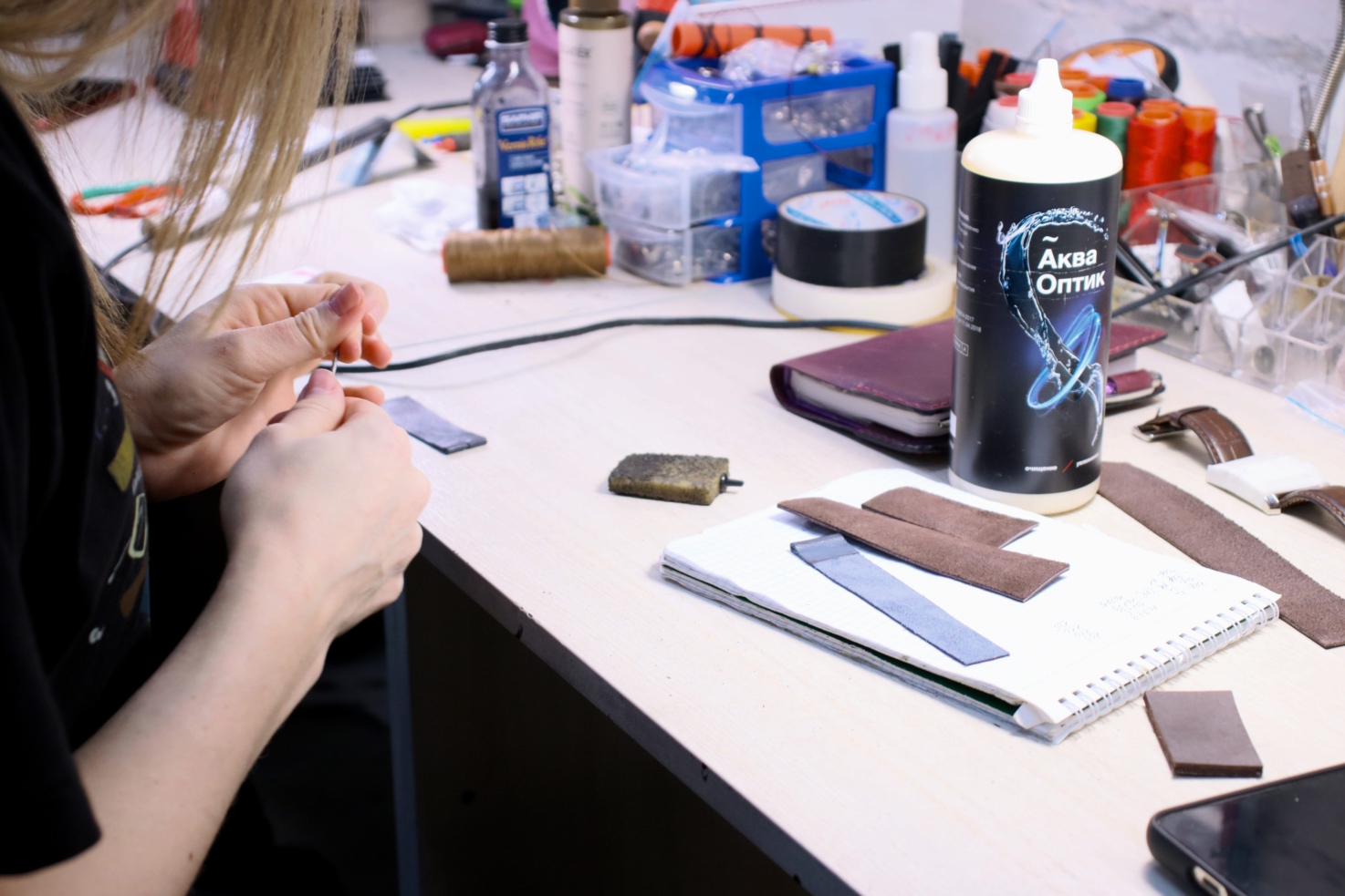 – У меня всегда было желание открыть своё дело. Так сложилось, что однажды я заинтересовался процессом создания изделий из кожи. Нашел сайт иностранных мастеров, которые показывали все процессы, стал изучать. Меня очень вдохновило, и я начал заниматься этим делом. На тот момент по России и в Казани практически не было мастеров, создающих качественные изделия из кожи. Я взял отпускные, поехал на них на наш кожевенный завод «Сафьян», купил несколько шкур и стал делать ремни и браслеты. Как раз кожаный браслет и стал моей первой продажей 10 лет назад. Даже сохранил фото этого изделия на память. Начал искать покупателей среди коллег по работе, а потом всё пошло по сарафанному радио. Довольно сложно найти мастерскую, где быстро и качественно сделают именные изделия из кожи. Поэтому желающих оказалось достаточно, чтобы дело пошло.