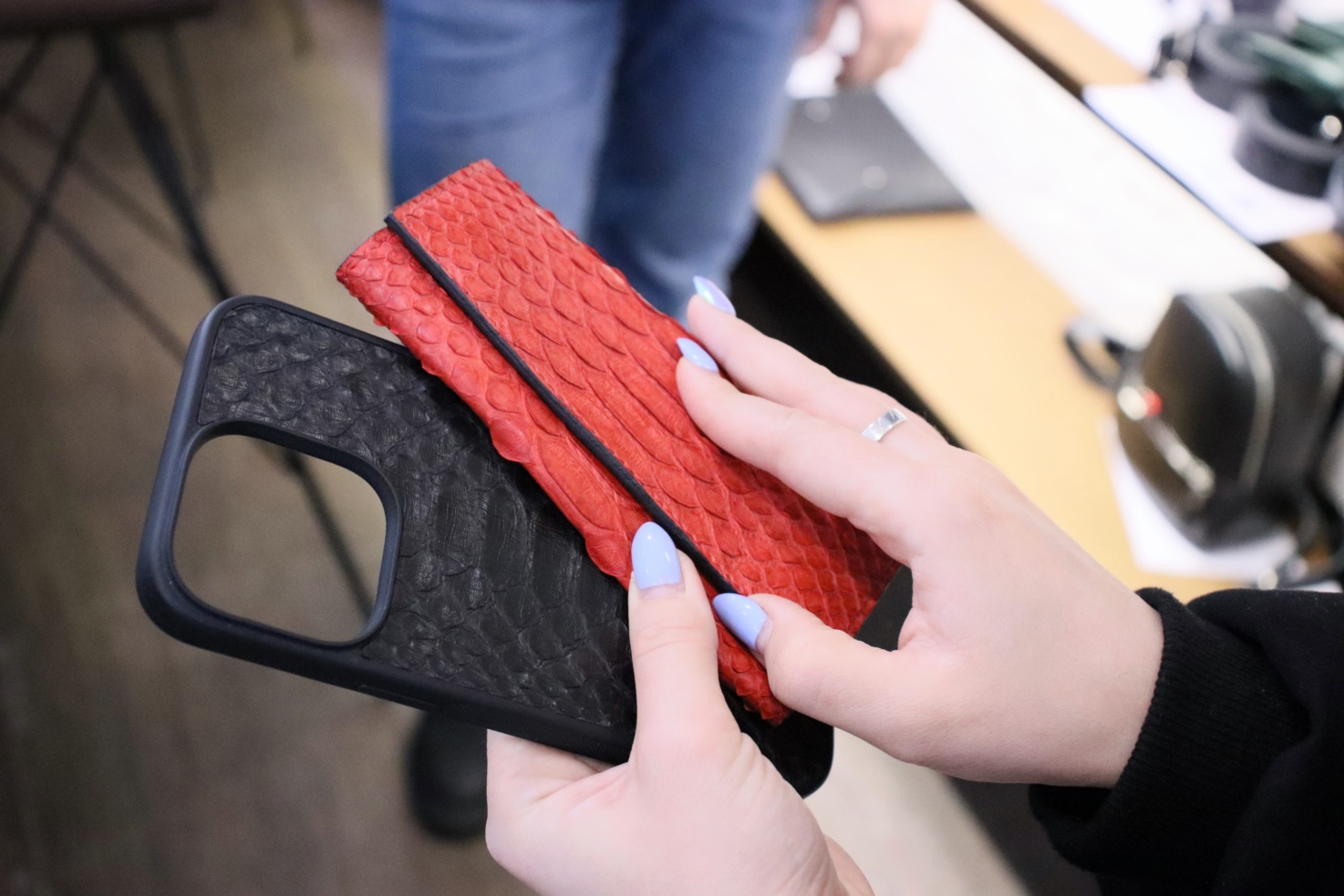 – Изначально нашей командой были разработаны несколько самых востребованных моделей – картхолдеры, кошельки, обложки на паспорт, документницы. Затем я отслеживал запросы и потребности у наших покупателей, исходя из этого постепенно вводили новые модели. Мы работаем для клиентов, поэтому они направляют нас в плане ассортимента. Так появились чехлы для проводных наушников, чтобы можно было не мучаться с запутанными проводами в сумке. Все изделия изготавливаются из телячьей кожи, так как она самая качественная в этом деле, а также иногда вводим эксклюзивные товары из экзотических материалов. Сейчас, например, есть изделие из кожи питона. Но самая практичная и хорошая – это кожа теленка, поэтому мы отдаем приоритет классике в этом вопросе.
