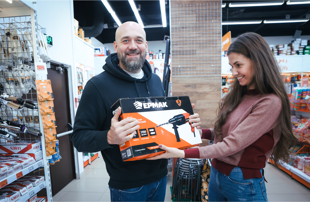 Для любителей пара – банный набор из трех предметов (шапка, варежка, коврик), и он обойдется вам в 149 рублей с 7 по 23 февраля. Ну а мужчины, которые «на ты» с инструментами, непременно оценят дрель-шуруповерт «ЕРМАК» (по ШОК-цене в 1 499 рублей с 16 по 22 февраля) или ящик для инструмента «ЕРМАК» с отсеками для крепежа. Удобный для хранения и перевозки, в нем все болты будут строго на своем месте, а не вперемешку, а цена составит всего 149 рублей 23 февраля.