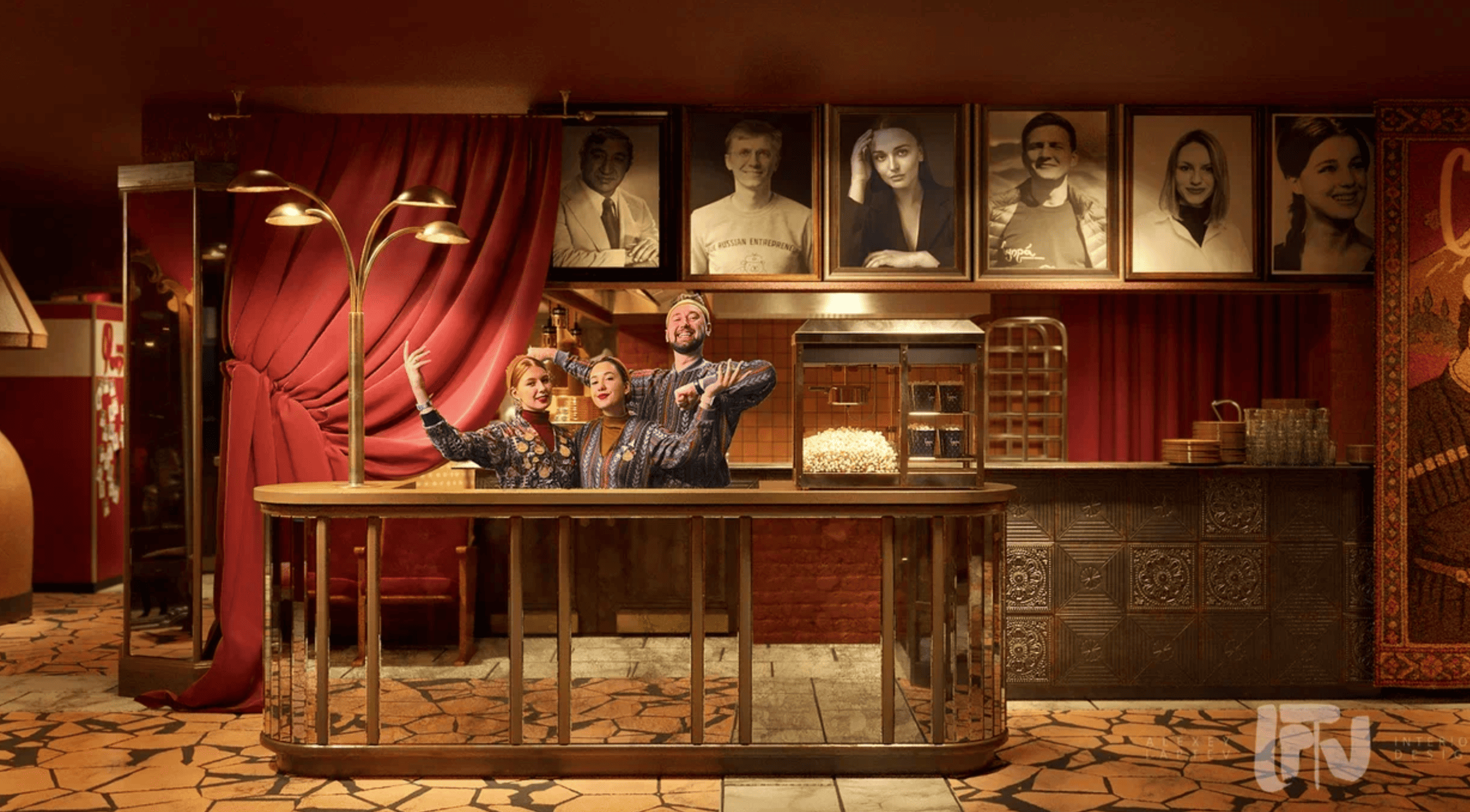 Именно к этой эпохе ведут стены дома, где этой зимой откроется новый грузинский ресторан. Его история началась с находки во время ремонта: в дальнем углу пылившегося помещения обнаружили ящик с киноплёнками и старой надписью «Супра Кино. История любви, вкуса и особенных вечеров». На плёнке — фрагменты застолий, тосты, хинкали, женщины в вечерних платьях, свет ламп и искренний смех.