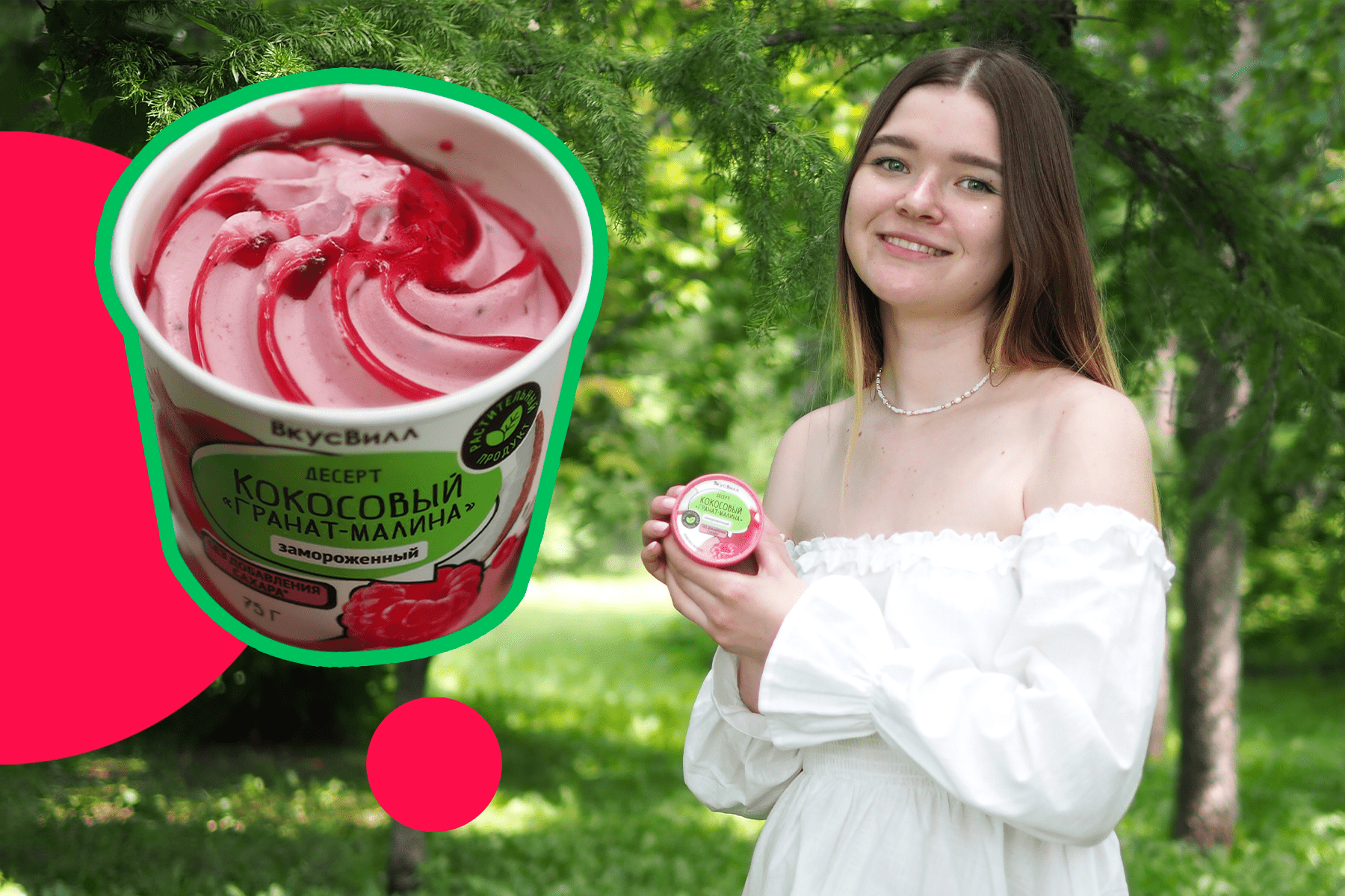 “Верхушка мороженого покрыта невероятным джемом из граната. Его будто делала бабушка! Кстати, когда я увидела упаковку и поняла, что сейчас буду пробовать мороженое с малиной, тут-же приготовилась ощущать специфический вкус малинового ароматизатора. Но там настоящая малина, и я это чувствую. Потрясающе!”, – сообщает Ульяна Саитова.