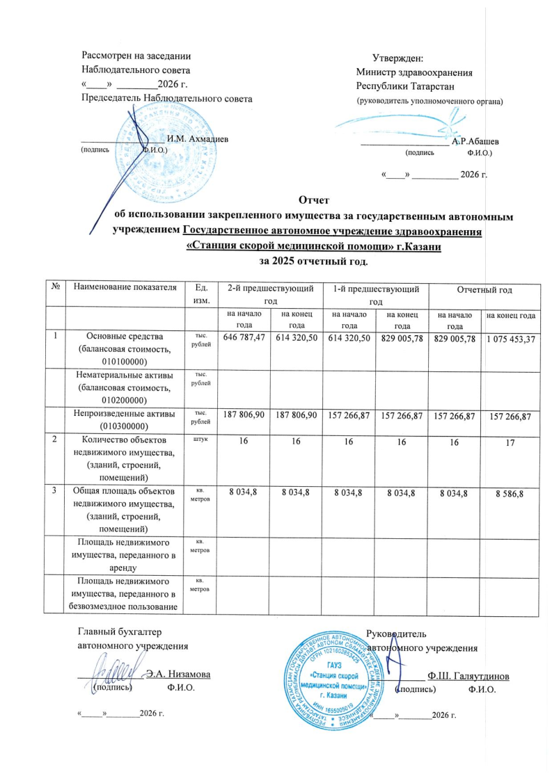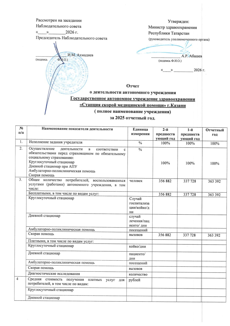 Отчет о деятельности автономного учреждения Государственное автономное учреждение здравоохранения «Станция скорой медицинской помощи» г. Казани ( полное наименование учреждения) за 2025 отчетный год.