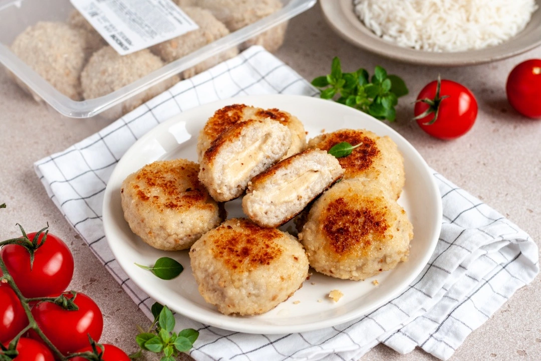 "Биточки "Римские" из филе цыпленка стали еще более нежными благодаря добавлению творожного сыра. Их тонкий вкус дополняется соевым соусом с зернами горчицы, базиликом и перцем, придавая им особое очарование. Это блюдо предлагает множество вариантов приготовления - его можно запечь в духовке, обжарить на сковороде или приготовить в виде паровых котлеток с овощами в рамках полезного питания.