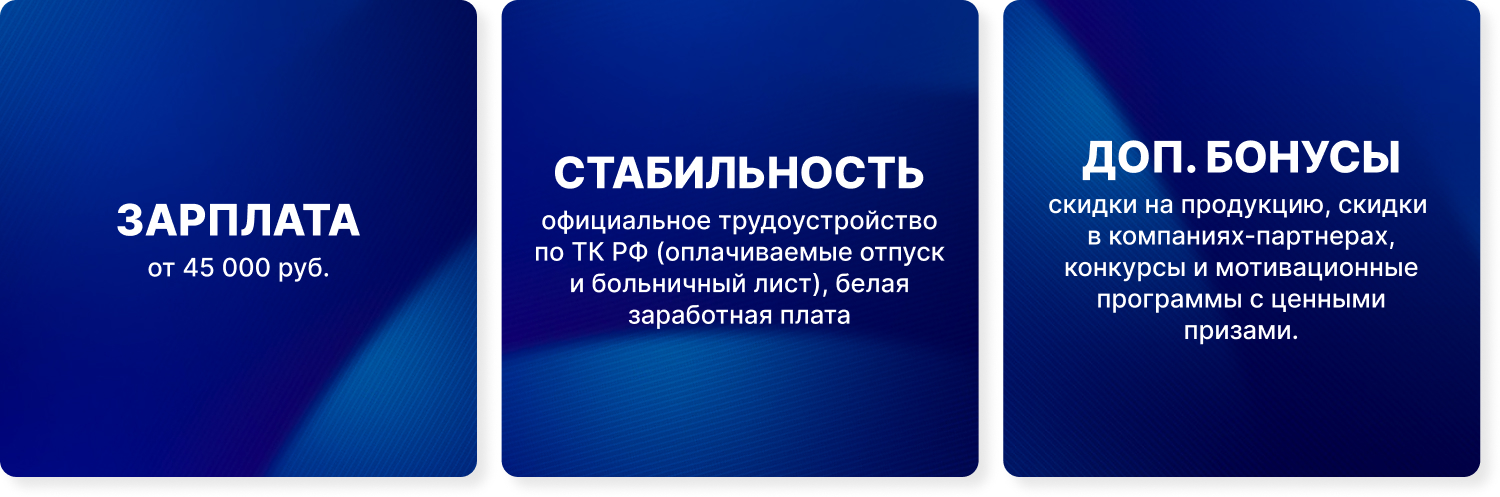- Консультировать, демонстрировать и продавать продукцию представленных брендов.