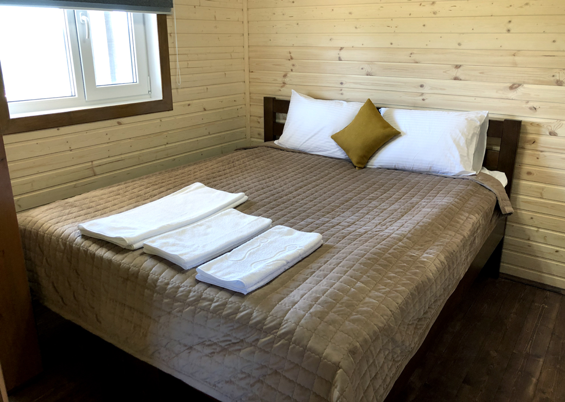Домики отлично меблированы, в них есть комфортные кровати и диваны, гостям предоставляется постельное белье и полотенца, есть душ и туалет, оборудован теплый пол. Для любителей готовить еду самостоятельно в домике есть плита и микроволновка. При желании, можно взять в пользование казан, мангал, тандыр, гриль-стол, решетки и шампура.