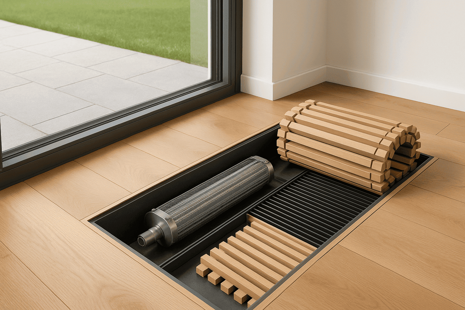 Конвектор Briz полностью ушёл в пол, сохранил эстетику и при этом дал мощный поток тепла за счёт встроенного вентилятора. Владельцы отметили, что комната стала прогреваться быстрее, чем с обычными радиаторами.