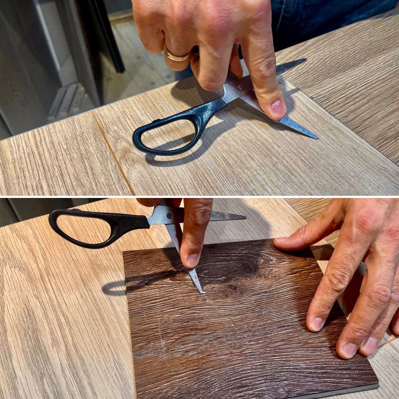 На втором изображении видно, что кварцвинилл легко царапается, в отличие от ламината