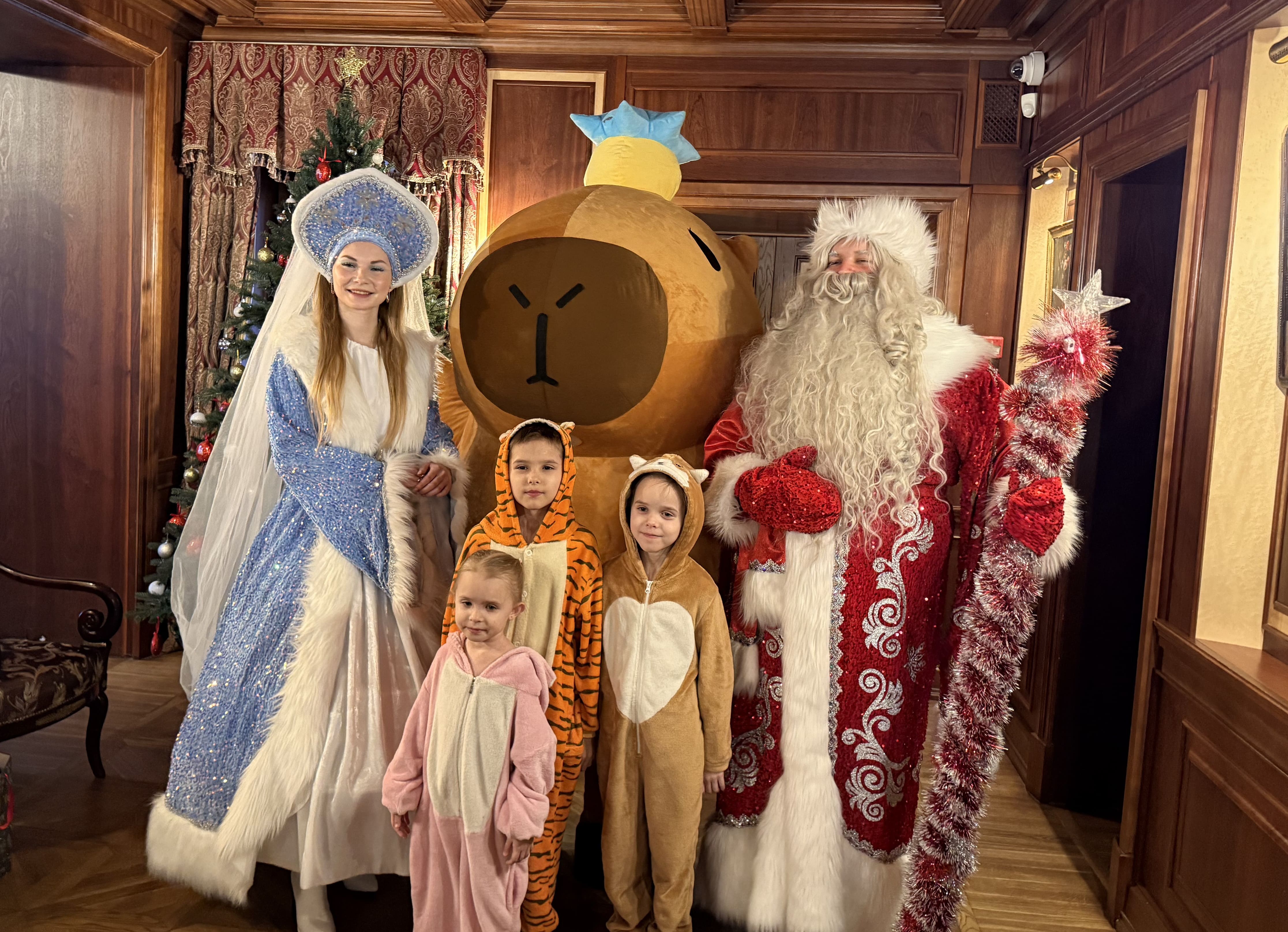 В этот раз привычные новогодние герои учились быть современными: угадывали интернет-мемы и песни, играли в подвижные игры. Вместе со сказочным блогером, Дедом Морозом, Снегурочкой и Капибарой они водили хоровод, участвовали в конкурсах, фотографировались.