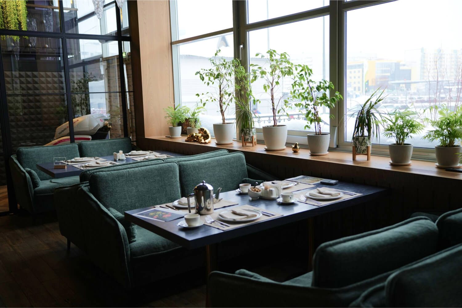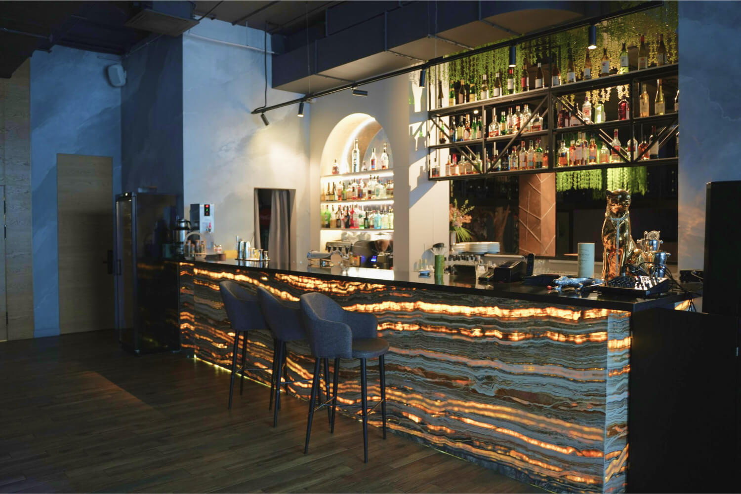 Лаунж зал располагает к спокойной встрече, душевным посиделкам и свиданиям. Здесь расслабленная атмосфера и уютный, приглушенный свет.