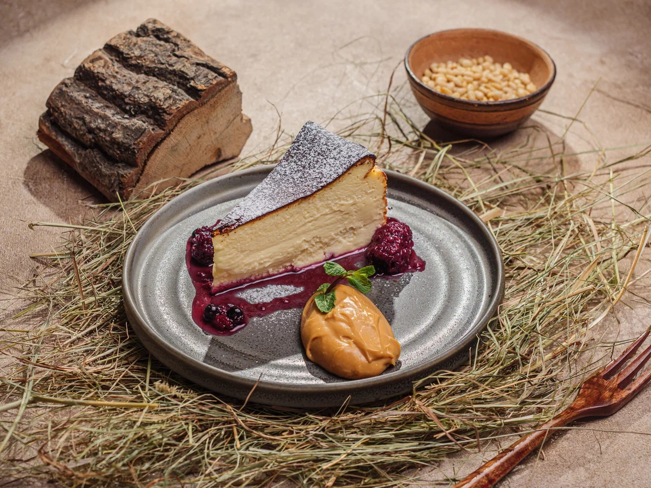 Испанский чизкейк в ИТLE покоряет нежной текстурой. Сыр креметто, маскарпоне и сочетание тёмного и белого шоколада создают гармоничный вкус, дополненный свежестью ягодного соуса с лёгкой кислинкой.