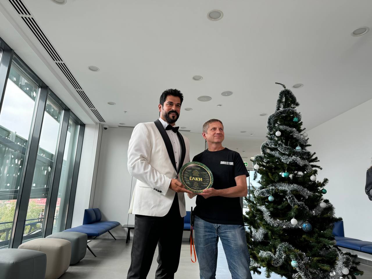 «Для меня Бурак Озчивит — открытие. Мы только сегодня познакомились, и должна сказать, что я волновалась, как сложится контакт, ведь чтобы играть вместе, да еще и комедию, нужно очень доверять партнеру. Огромное ему спасибо, потому что он оказался потрясающим парнем. Мы быстро нашли общий язык. Переводчика Бурака играет тоже турецкий артист, который очень хорошо говорит на русском. И у нас уже сложилась такая банда, что, мне кажется, я скоро заговорю на турецком. Классный он, классный! Поверьте», — рассказала актриса Кристина Бабушкина.