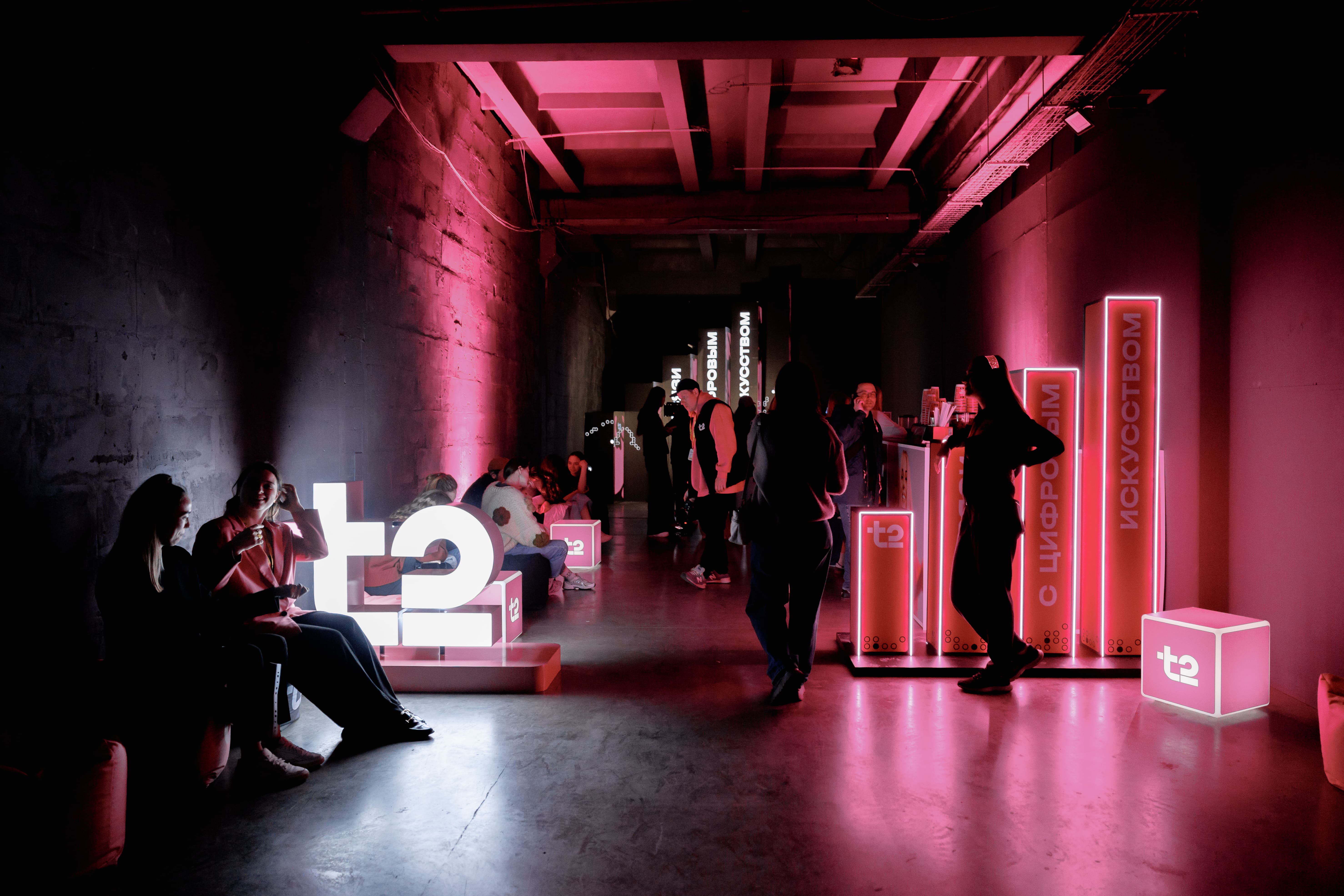Но 3D-мэппинг на фасаде главной достопримечательности города – не единственное, чем удивила в этом году Т2. Не меньший восторг у зрителей вызвала экспозиция в индустриальном пространстве ЦЕХ*, организованная Т2 и dreamlaser. Здесь цифровое искусство рождалось прямо на глазах у публики: алгоритмы в реальном времени реагировали на движения, звуки и эмоции, создавая постоянно меняющиеся визуальные паттерны. Пространство стало настоящей лабораторией новых смыслов: каждый посетитель чувствовал себя частью большого творческого процесса.
