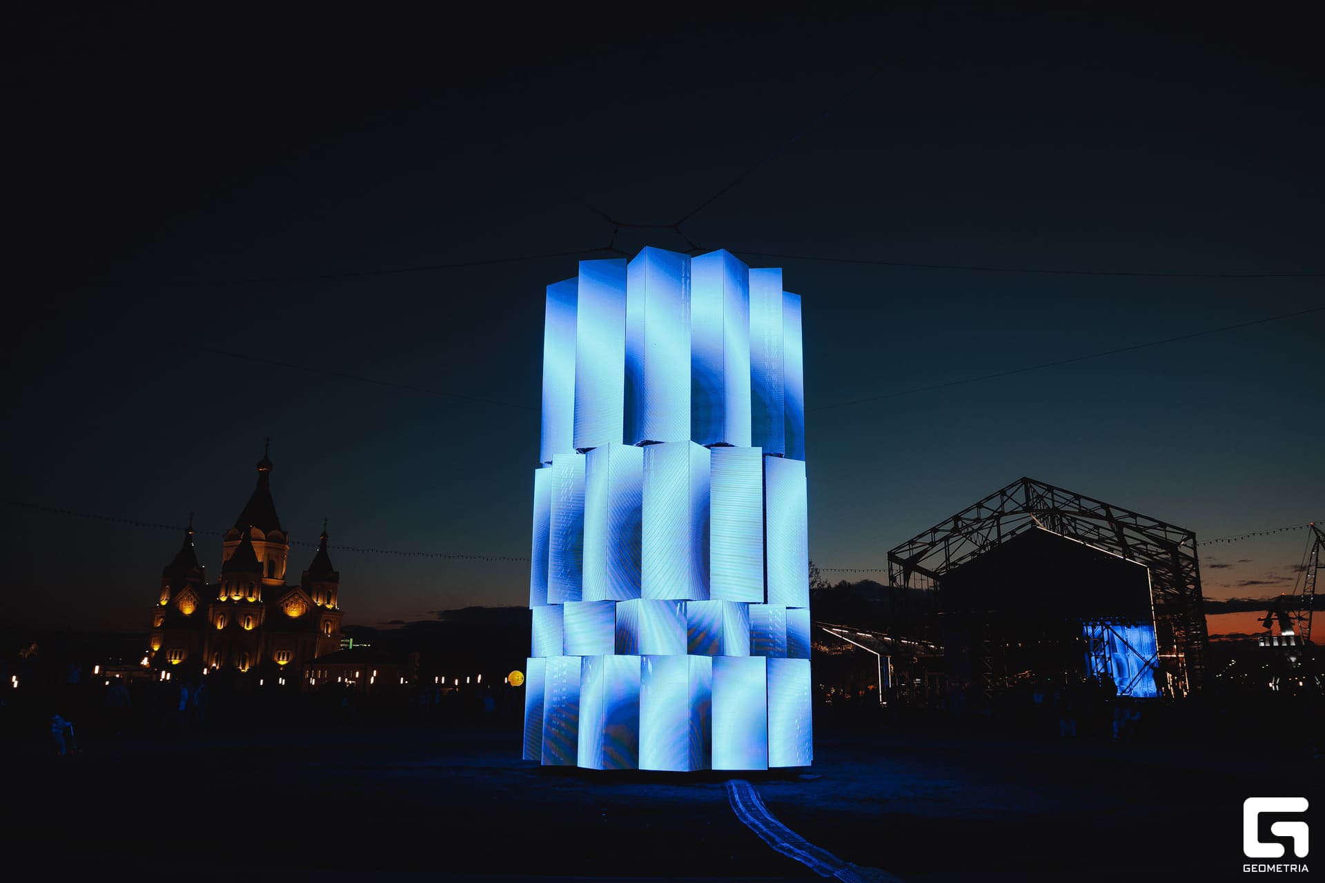 Заброшенная башня крекинга, известная в народе как «нижегородский Колизей», стала одним из самых эффектных мест фестиваля. Здесь на высоте нескольких десятков метров развернулось захватывающее шоу света и музыки: мэппинг-инсталляция превратила руины промышленного гиганта в мистическую крепость света.